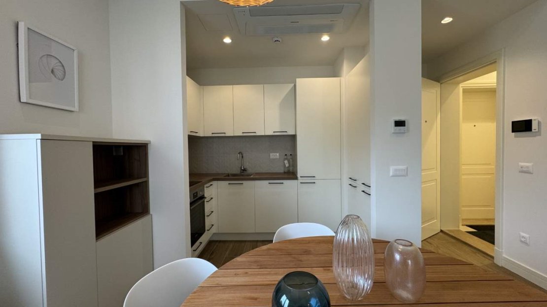 On the top floor of the prestigious Centrale neighbourhood, within the luxurious Lustica Bay complex, a 56 sqm apartment is available, including an 8 sqm terrace.