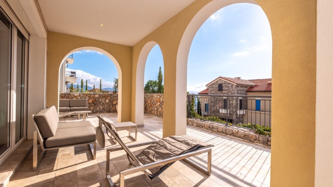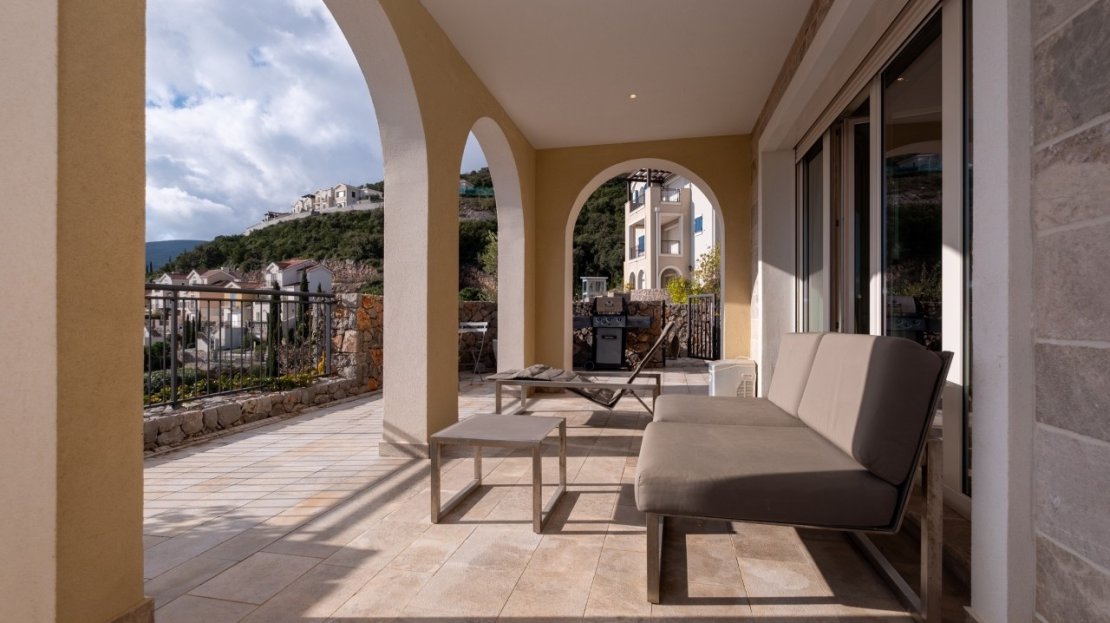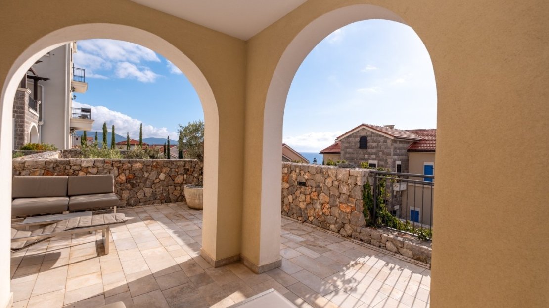 The apartment is offered for sale in the prestigious Marina Village neighborhood, within Lustica Bay, one of the most attractive destinations on the Montenegrin coast.