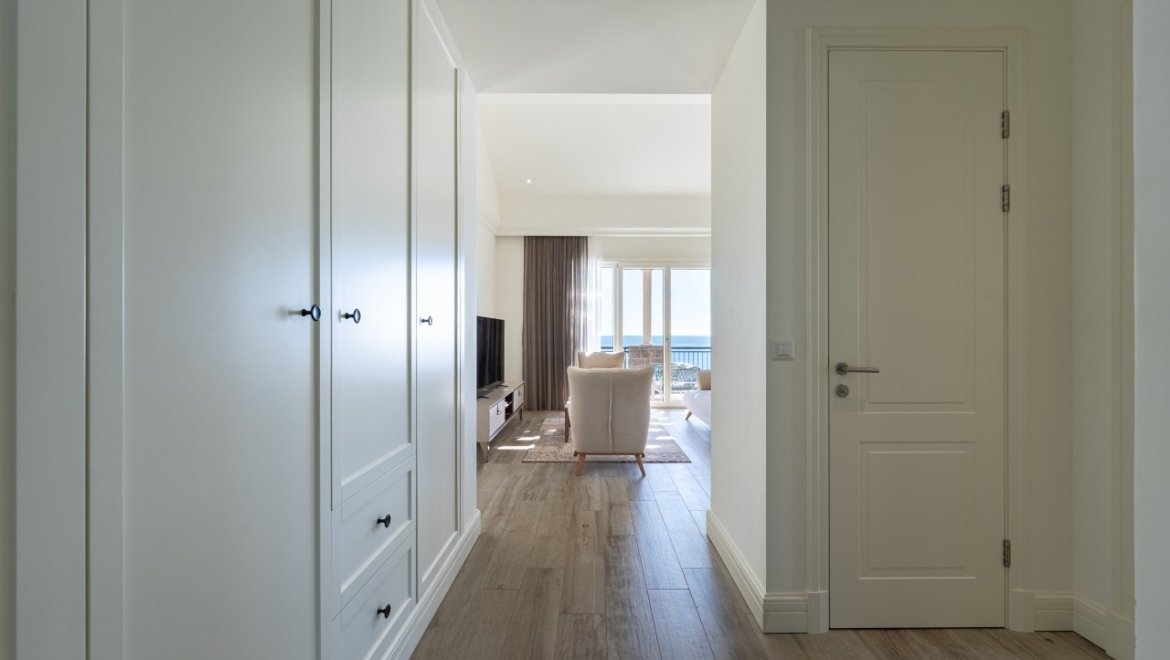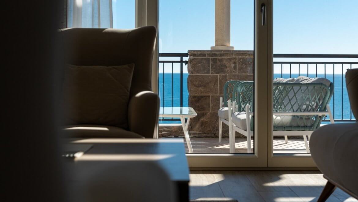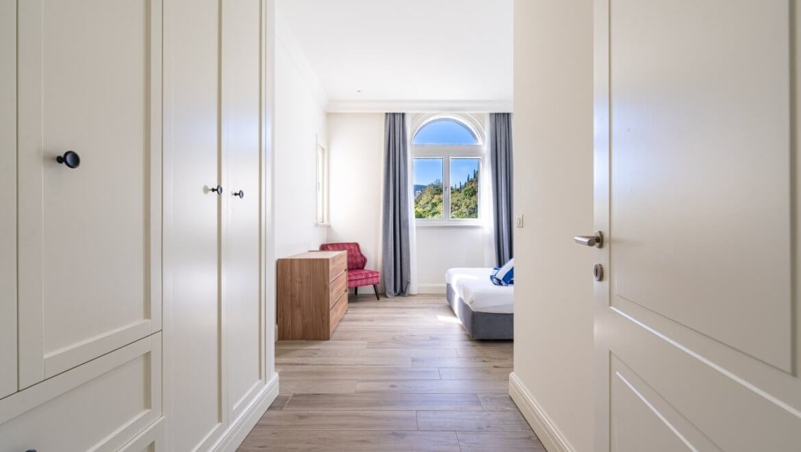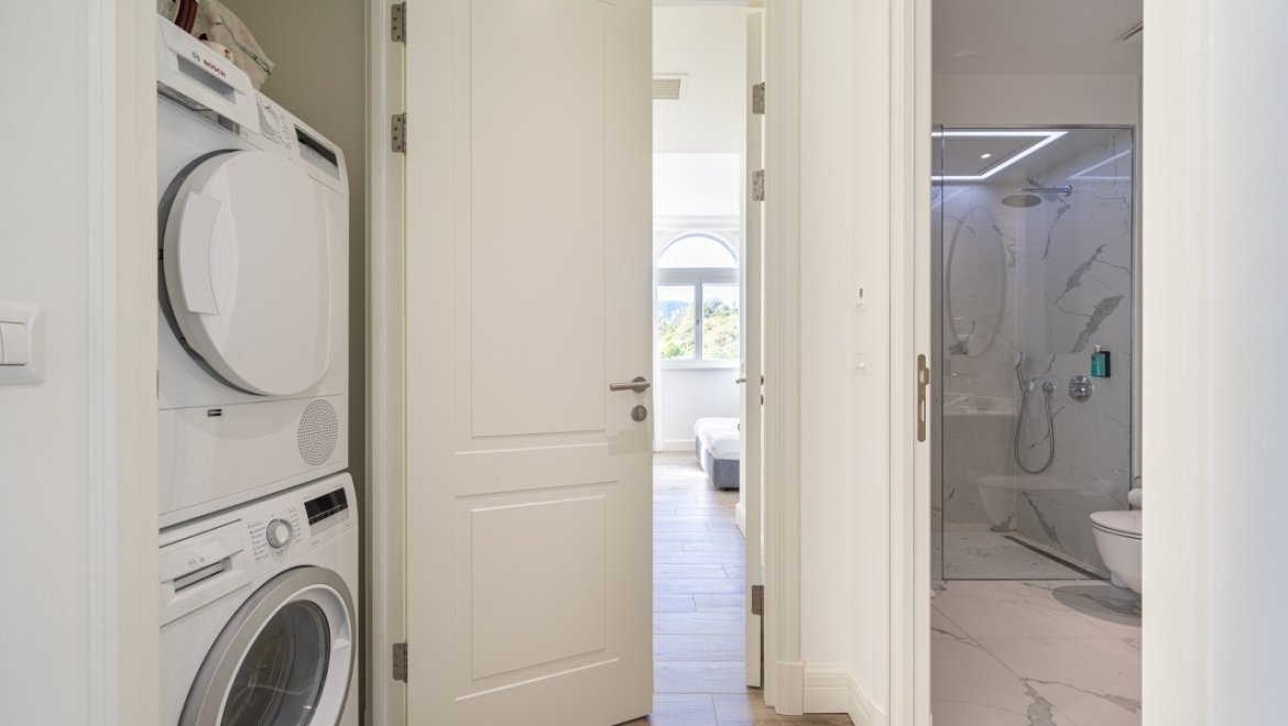 Interiors are bright and minimalist, offering high-end finishes and natural materials for a serene, comfortable atmosphere. Thanks to its optimal orientation, the apartment is awash with sunlight all day; the terrace is ideal for morning coffee with sunrise views or relaxing evenings watching the sun set over the Adriatic.