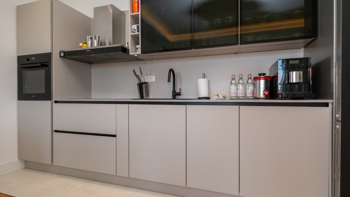 Квартира оснащена техникой Miele, а в интерьере использованы известные бренды: