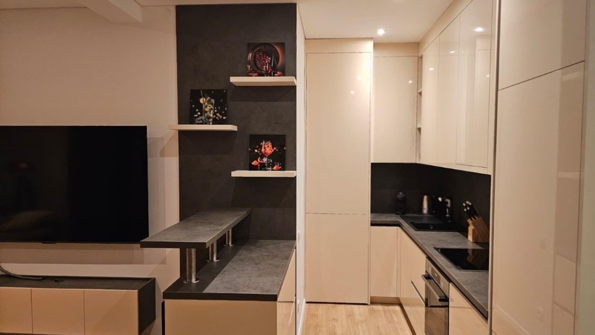 Квартира полностью меблирована и оформлена в современном стиле с особым акцентом на комфорт и функциональность.