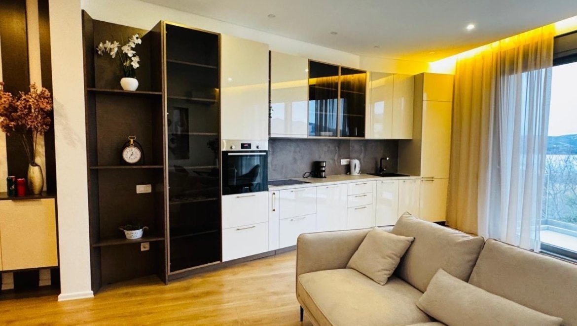 В отделке использованы качественные материалы и современные решения. Большие панорамные окна наполняют пространство дневным светом и создают ощущение простора. Объект расположен в тихом и благоустроенном районе Тивата с удобной транспортной доступностью и близостью к центру города, Porto Montenegro, пляжам и всей необходимой инфраструктуре.