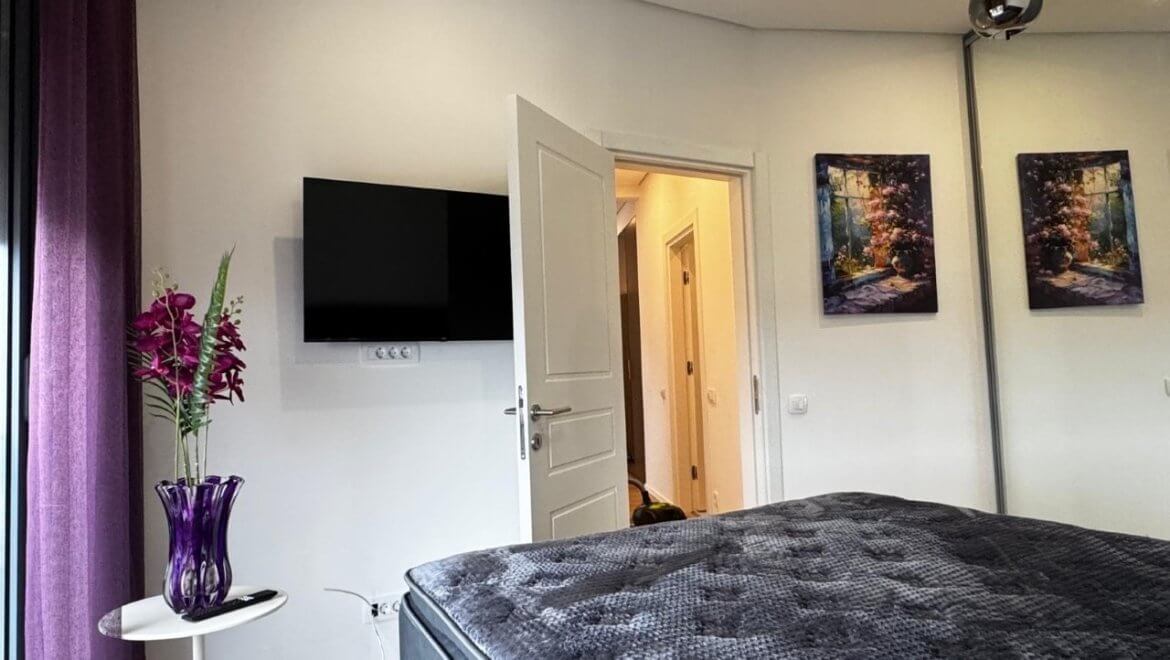 Квартира никогда не была заселена и продается полностью меблированной — с тщательно подобранной мебелью и бытовой техникой, которые включены в стоимость. Функциональная планировка включает две спальни, гостиную с кухней и обеденной зоной, два санузла, а также два балкона, обеспечивающих дополнительный комфорт и естественное освещение.